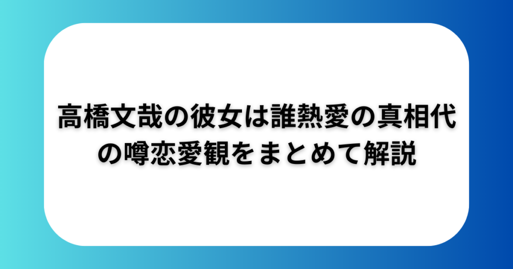高橋文哉の彼女は誰?熱愛の真相・歴代の噂・恋愛観をまとめて解説