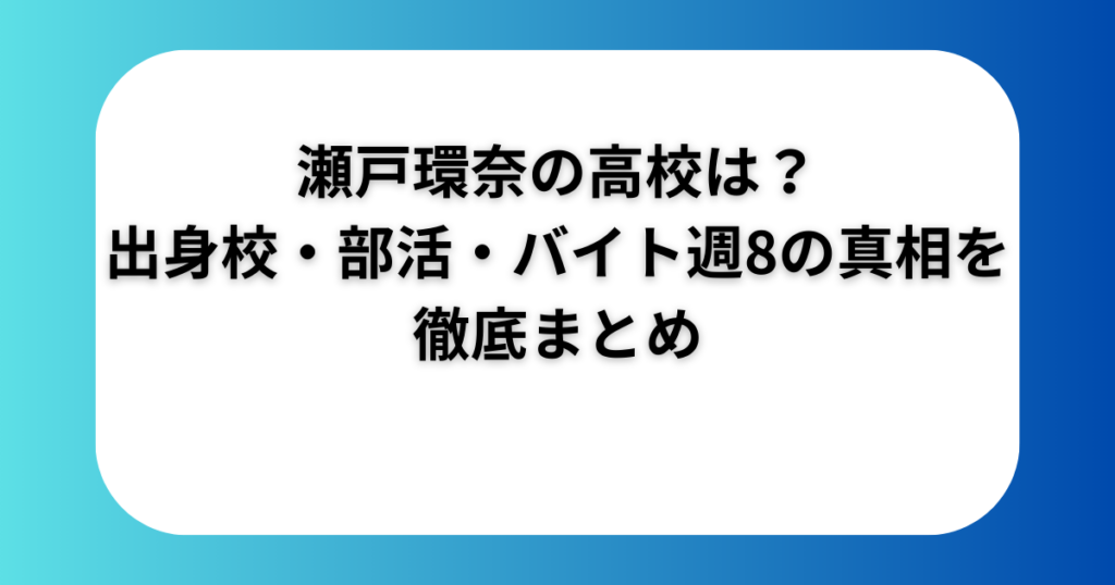 引用:Instagram 「瀬戸環奈の出身高校はどこ?」「バイト週8って本当?」——2024年10月の鮮烈デビュー以来、セトカンこと瀬戸環奈さんへの注目は学歴・学生時代エピソードにも集まっています。 この記事では、高校の公開状況から部活動・アルバイト・デビ... 人物