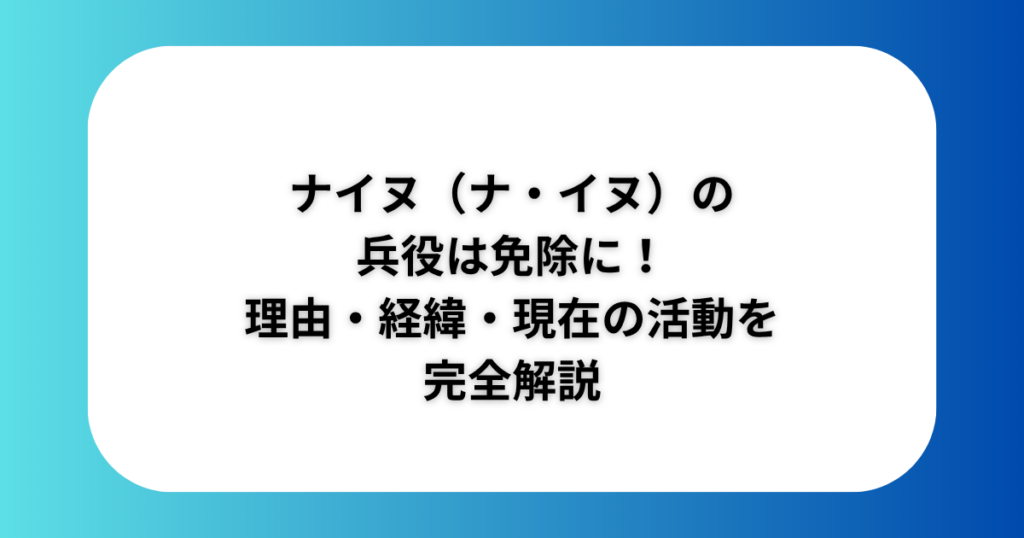 ナイヌ(ナ・イヌ)の兵役は免除に!理由・経緯・現在の活動を完全解説