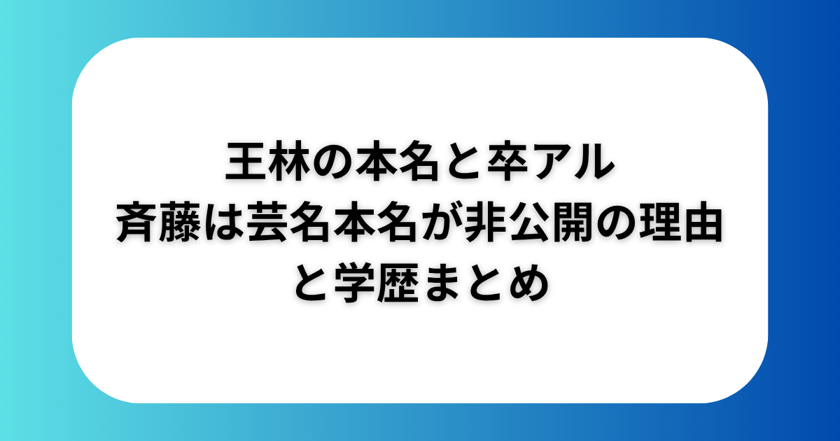 引用:https://www.biteki.com/gallery/1955621?from=1954845&image=2 「王林 本名 卒アル」と検索しているあなたへ。本名は現時点でも公式には非公開ですが、芸名の由来・「斉藤」が本名ではない理由・噂の真相・学生時代のエピソードまで、確認でき... 俳優