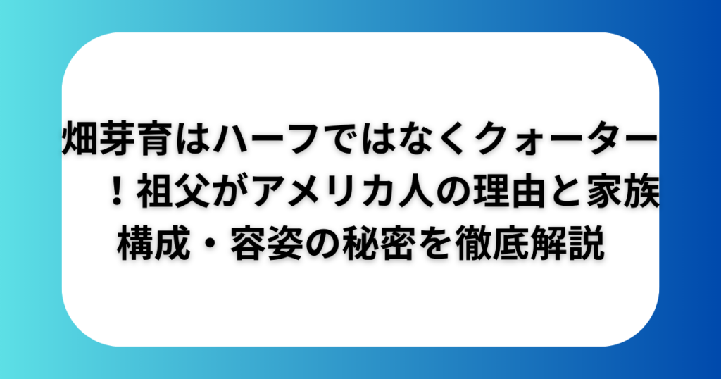 畑芽育はハーフではなくクォーター!祖父がアメリカ人の理由と家族構成・容姿の秘密を徹底解説