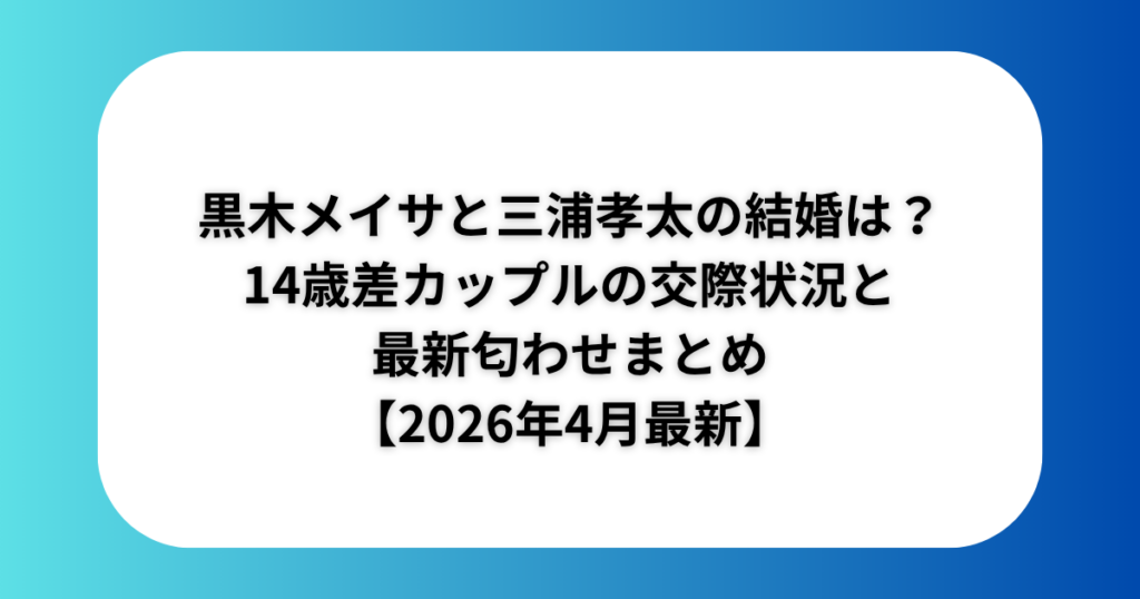 黒木メイサと三浦孝太の結婚は?14歳差カップルの交際状況と最新匂わせまとめ【2026年4月最新】