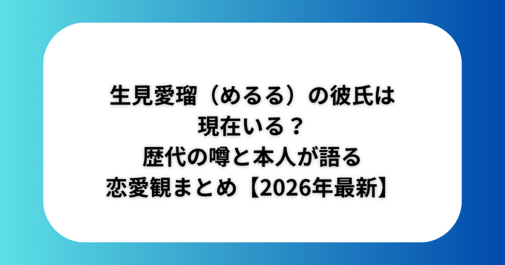 生見愛瑠(めるる)の彼氏は現在いる?歴代の噂と本人が語る恋愛観まとめ【2026年最新】