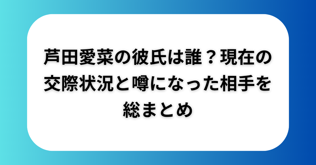 引用:https://www.jobbykids.jp/talent/%E8%8A%A6%E7%94%B0%E6%84%9B%E8%8F%9C/ 「芦田愛菜に彼氏はいるの?」と気になって検索した方へ、この記事では現在の交際状況から、これまでに噂になった相手まで、確認できる情報をもとに整理しています。 2026年... 女優