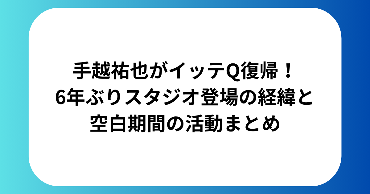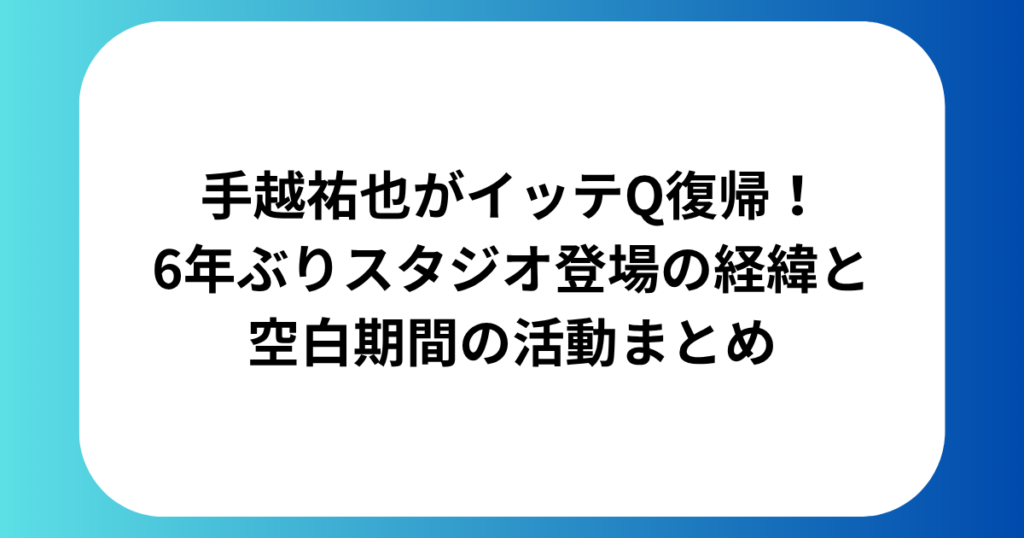 手越祐也がイッテQ復帰!6年ぶりスタジオ登場の経緯と空白期間の活動まとめ