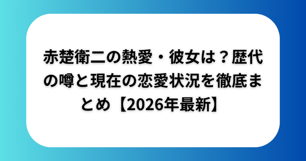 赤楚衛二の熱愛・彼女は?歴代の噂と現在の恋愛状況を徹底まとめ【2026年最新】