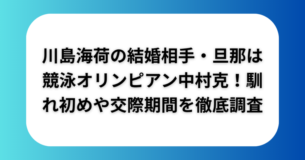 川島海荷の結婚相手・旦那は競泳オリンピアン中村克!馴れ初めや交際期間を徹底調査