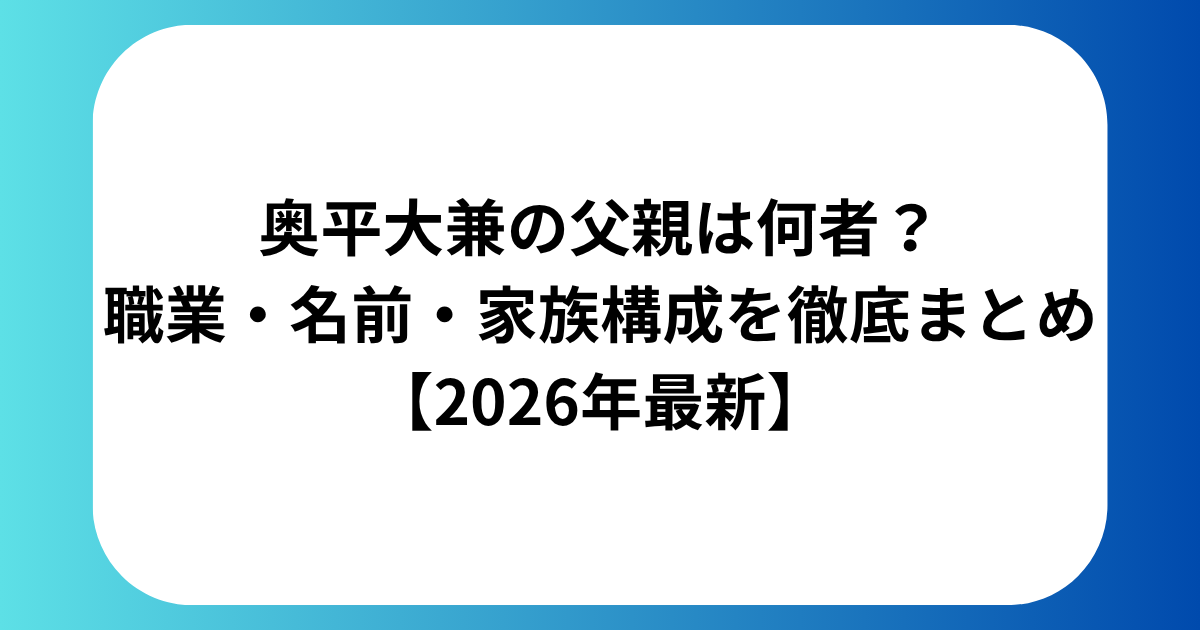 奥平大兼の父親は何者?職業・名前・家族構成を徹底まとめ【2026年最新】
