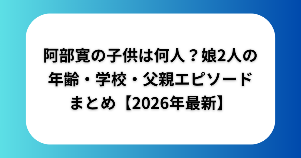 阿部寛の子供は何人?娘2人の年齢・学校・父親エピソードまとめ【2026年最新】