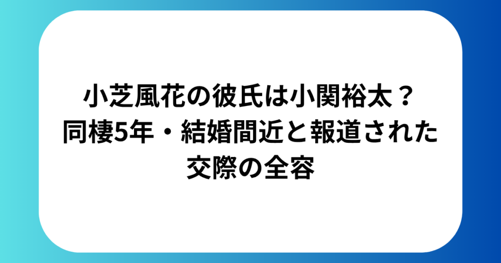 この投稿をInstagramで見る 小芝風花(@fuka_koshiba_official)がシェアした投稿 引用:Instagram https://www.instagram.com/p/DPso-s5kQVt/ 小芝風花の彼氏が、俳優・小関裕太であると2026年4月1日に「週刊文春」が報じ、大きな話題を集めています。 2人... アイドル・モデル
