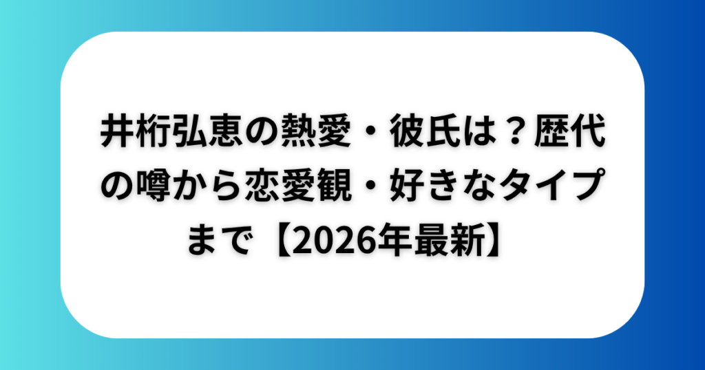 井桁弘恵の熱愛・彼氏は?歴代の噂から恋愛観・好きなタイプまで【2026年最新】
