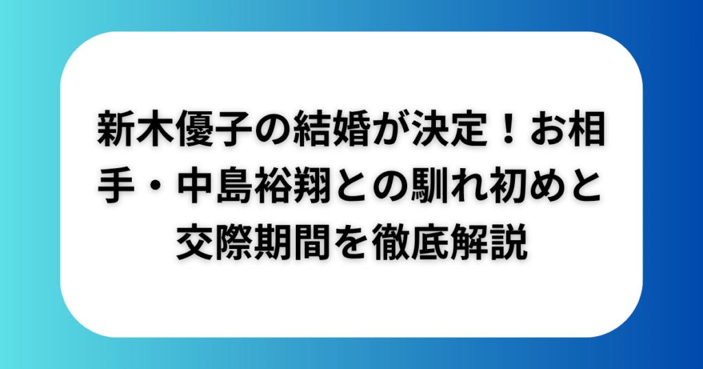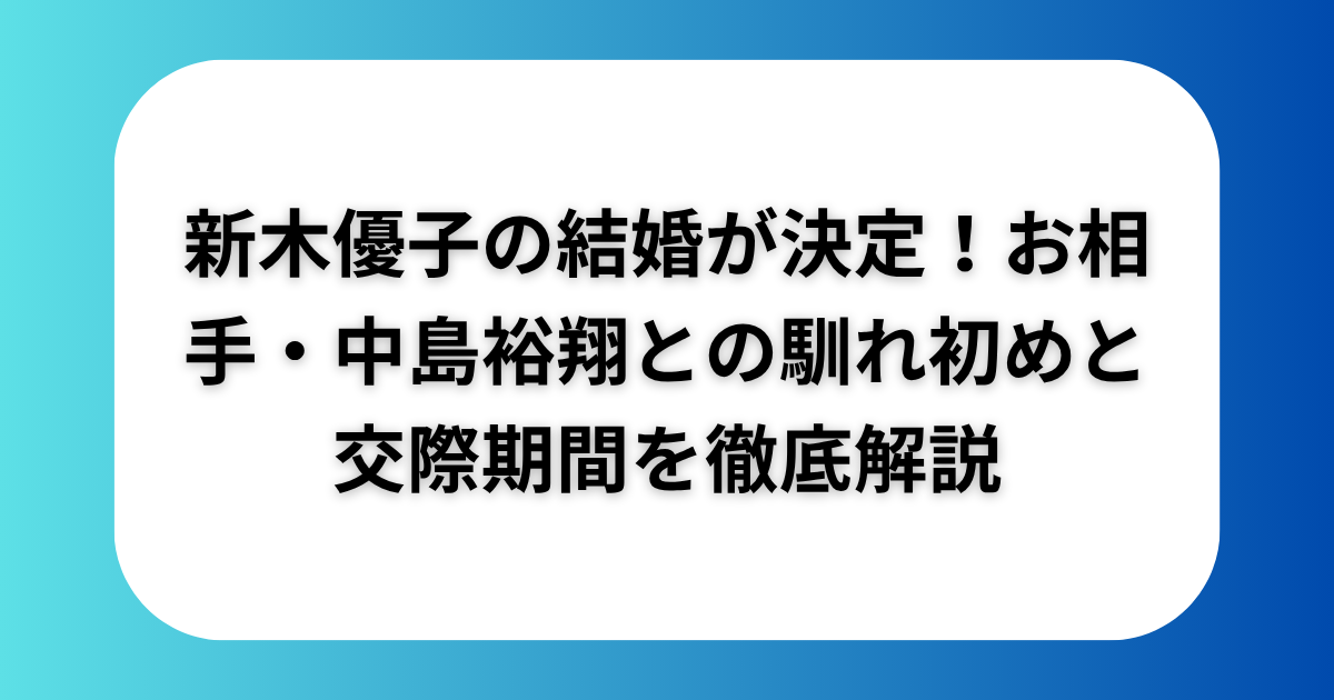 引用:https://i-voce.jp/feed/3256512/ 2026年4月11日、女優・新木優子さんが俳優・中島裕翔さんとの結婚を発表し、日本中に祝福の声が広がりました。ともに32歳・同い年という共通点を持つ実力派俳優カップルの誕生は、「2026年最大のハッピーニュース」... 女優