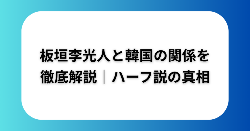 板垣李光人と韓国の関係を徹底解説|ハーフ説の真相