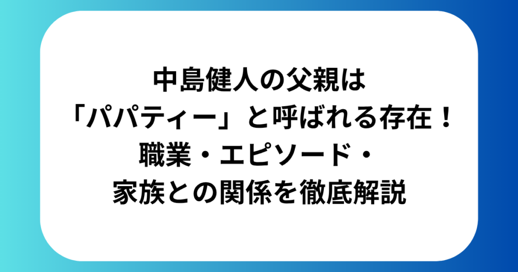 中島健人の父親は「パパティー」と呼ばれる存在!職業・エピソード・家族との関係を徹底解説