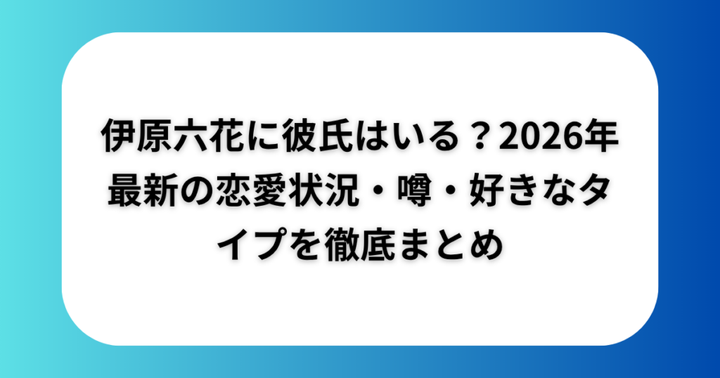 伊原六花に彼氏はいる?2026年最新の恋愛状況・噂・好きなタイプを徹底まとめ