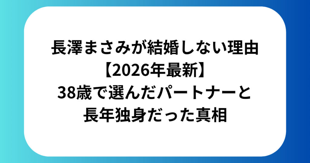 長澤まさみが結婚しない理由【2026年最新】38歳で選んだパートナーと長年独身だった真相