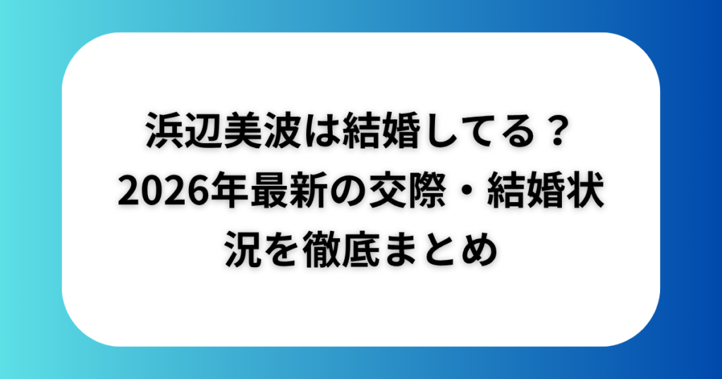 引用:https://www.crank-in.net/column/172448/1 浜辺美波さんが結婚しているのか、気になって調べた方も多いのではないでしょうか。 結論から言うと、2026年現在、浜辺美波さんは結婚していません。ただ、2025年7月には大手週刊誌による熱愛報道が飛び出... 女優