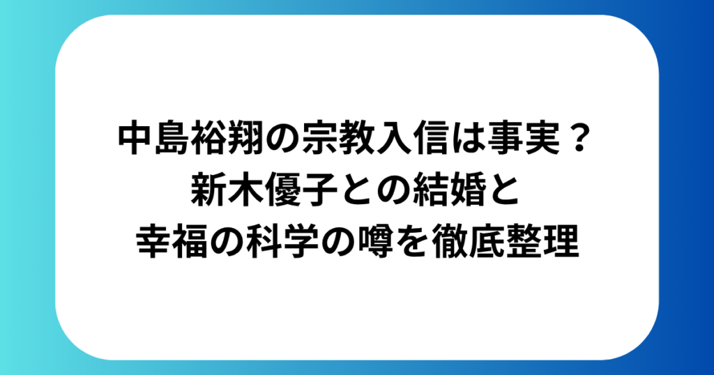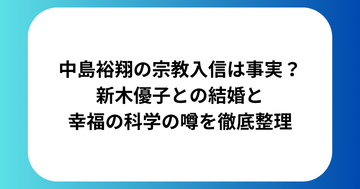 引用:X https://x.com/oricon/status/2012116309501497833/photo/1 中島裕翔さんの宗教入信について、気になって調べている人は多いのではないでしょうか。 2026年4月11日、中島裕翔さんと女優・新木優子さんの結婚が発表され、おふたりを祝福する声が広... 女優