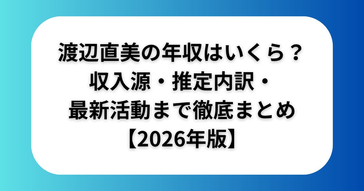 渡辺直美の年収はいくら?収入源・推定内訳・最新活動まで徹底まとめ【2026年版】