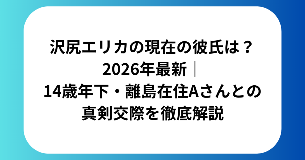 この投稿をInstagramで見る @erika_sawajiri_zoneがシェアした投稿 引用:Instagram https://www.instagram.com/p/B0LmfSaBxgj/ 沢尻エリカさんの現在の彼氏が、2026年1月に週刊誌『FRIDAY』によってスクープされ、大きな話題を呼んでいます。お相手は14...